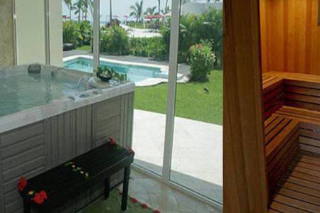 After checking in with Security and the Registration Desk, the entire suite, along with the beaches right out front, the common areas 2 pools, hot tub, kids playroom, tennis court and massage facilities are all there for you to enjoy. A gym is also available, free for 15+ night guests and $150 pesos per day per person for guests staying less than 15 nights. There is also an administrative desk and business centre. The grounds provide wonderful green lawns, two pools for adults and children, and is located right near the beach. A small snack bar, which offers drinks, appetizers and lunches, is located by the pools.