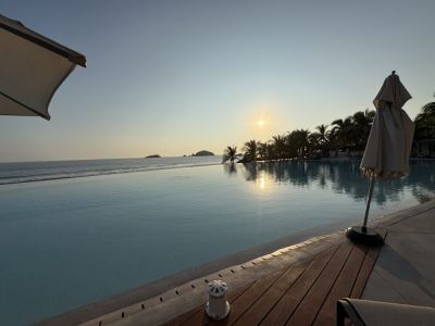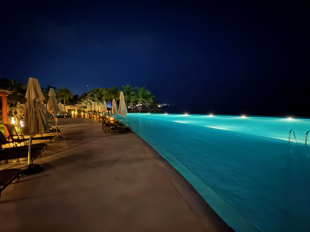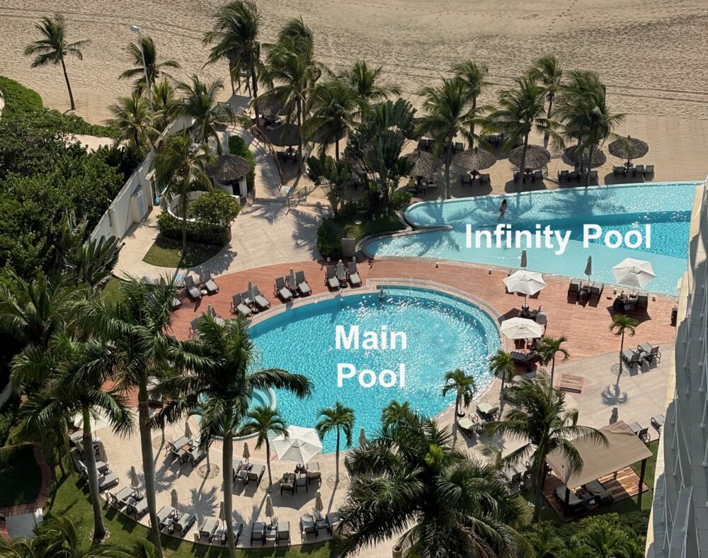 Suite doors open to the 250 sq/ft. private patio that offers an infinity swimming pool which is 4 ft deep. The patio has amazing views, with dining furniture to transform your meals into an outdoor oasis.
