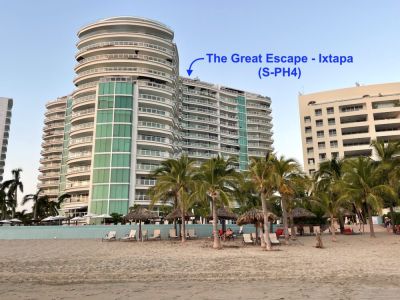 The Great Escape - Penthouse 4 has its own private patio pool, with breathtaking panoramic views of the coastline, located in the exclusive Bay View Grand Marina complex, across from the Robert Von Haage golf course. It is within walking distance to Ixtapa, less than 15 minutes by taxi to the fishing village of Zihuatanejo, and 25 minutes from the Airport.