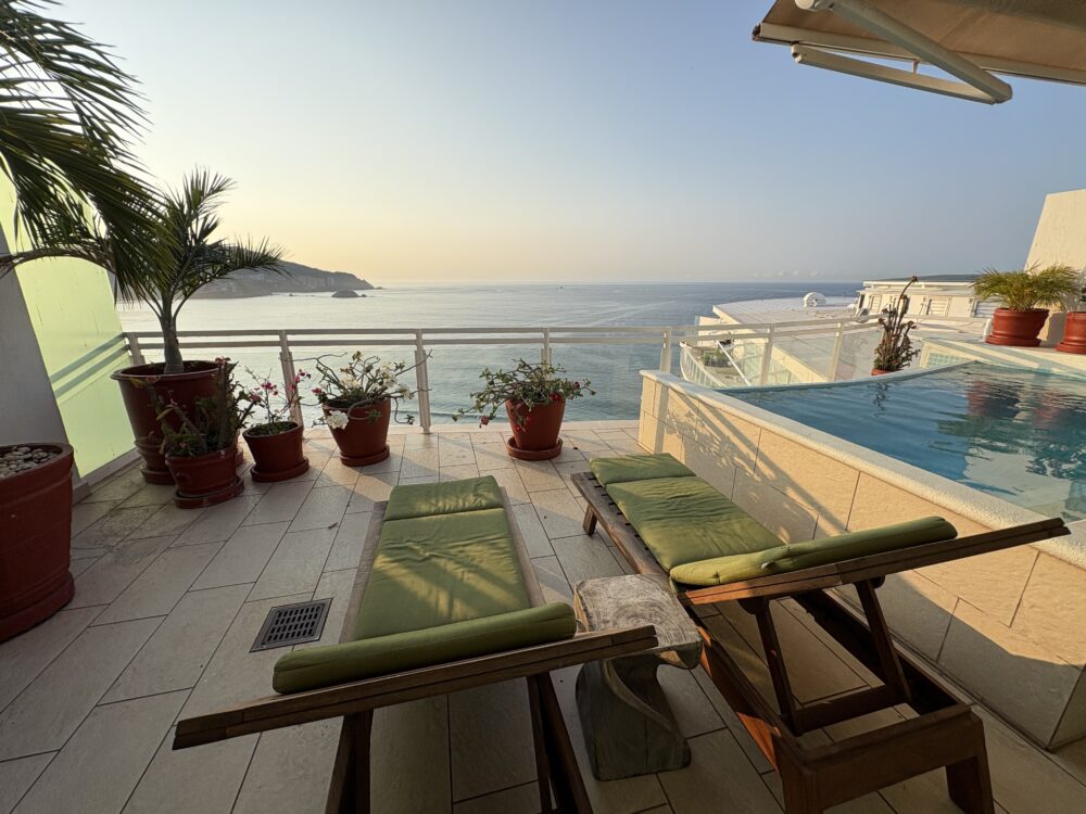 The Great Escape – Penthouse 4 has its own private patio pool, with breathtaking panoramic views of the coastline, located in the exclusive Bay View Grand Marina complex, across from the Robert Von Haage golf course. It is within walking distance to Ixtapa, less than 15 minutes by taxi to the fishing village of Zihuatanejo, and 25 minutes from the Airport.