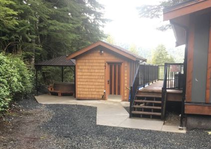 The cottage is at the end of a dead end road, up on a hill and offers our guests privacy. It is surrounded on 2 sides by an old growth forest, and the ocean and mountain views from the hot tub and the large deck are spectacular!